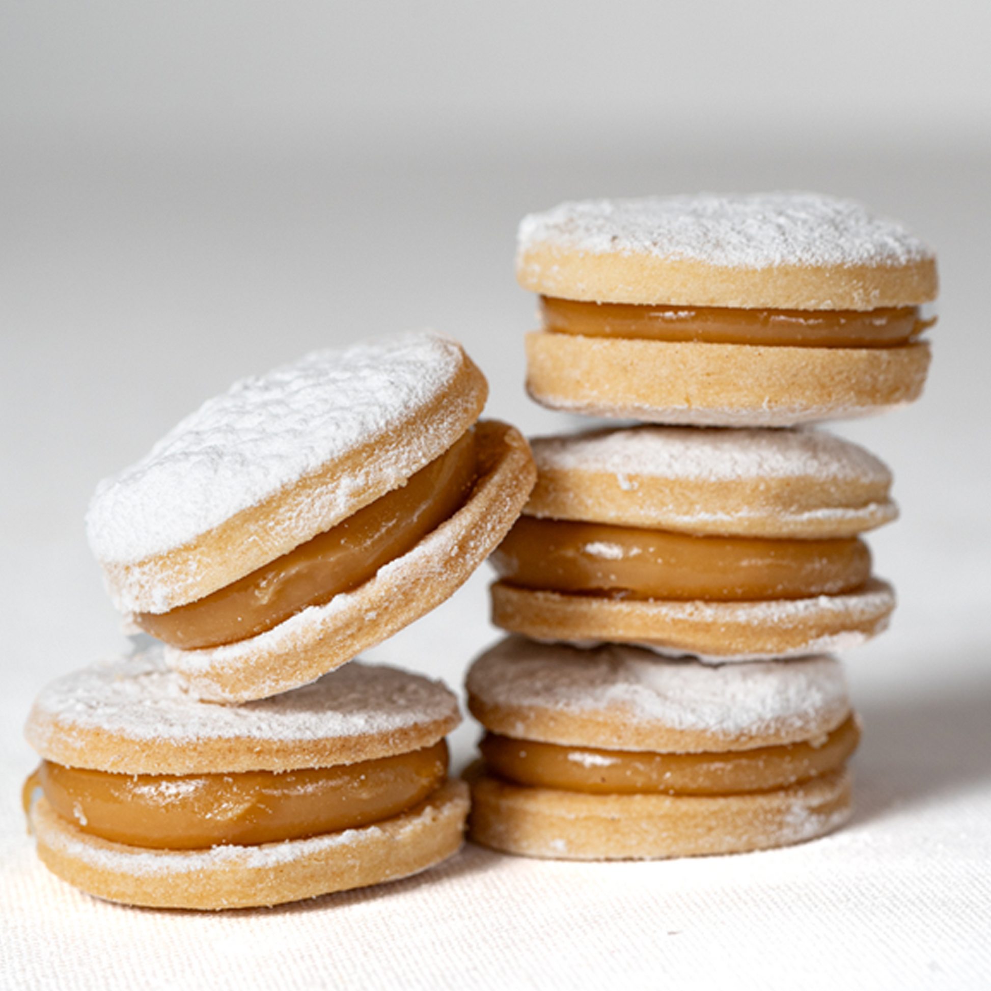 Galleta de harina y maicena, con abundante relleno de nuestro manjar preparado en olla, crema de pistacchio o chocolate.